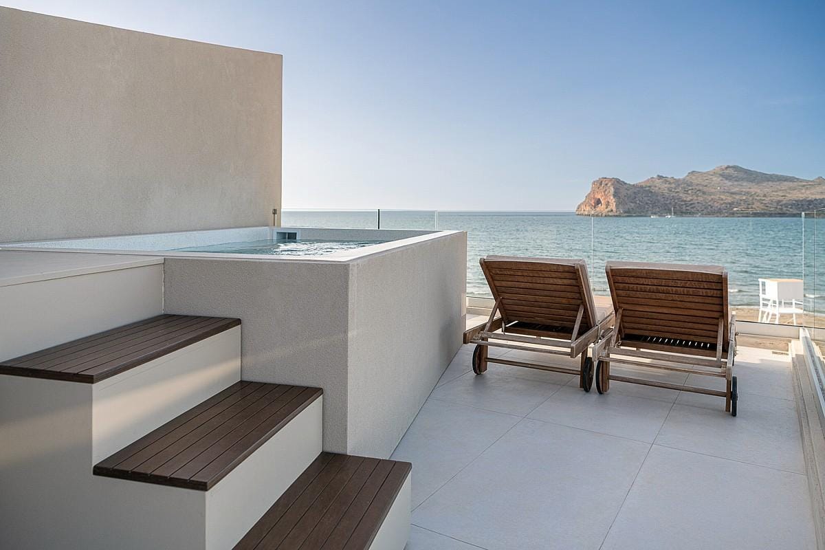 This beachfront 1st-floor maisonette features a private terrace with a pool, offering unobstructed sea-facing views. With its modern design and exceptional location, it provides a luxurious and serene retreat, perfect for enjoying the breathtaking scenery and ultimate relaxation.